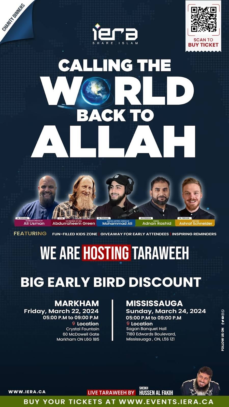 Event called “Calling the World back to ALLAH” and will occur in Canada in shaa Allah. You can find more detailed information on the poster itself. JazakAllahu Khair!