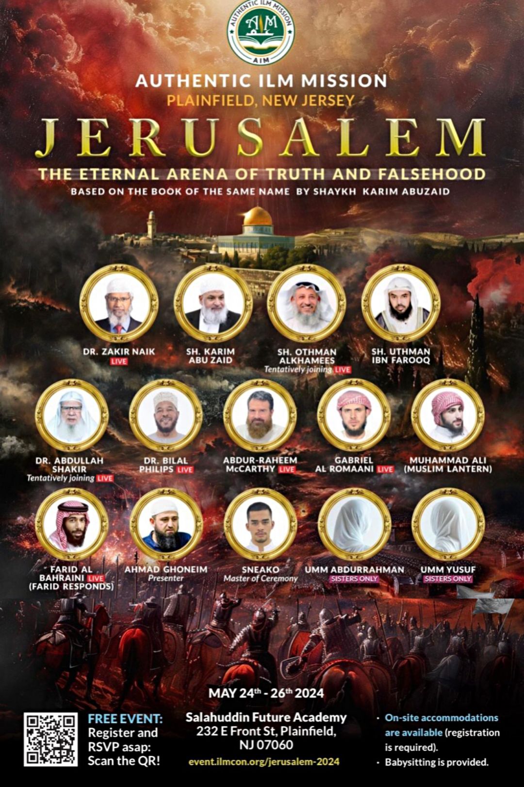 Assalamu Alaikum, we would like to invite you all to upcoming Event, called “JERUSALEM The Eternal Arena of truth and Falsehood” and Event will occur in Plainfield, New Jersey, USA in May 24th ~ May 26th 2024 in shaa Allah. You can find more detailed information on the poster itself. JazakAllahu Khair!
